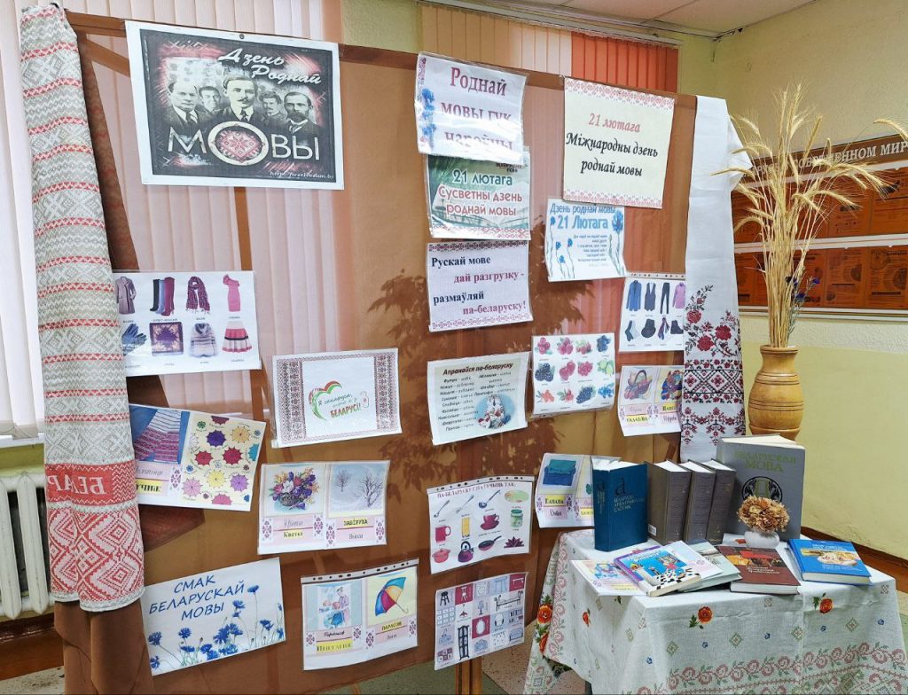 На другім паверсе каледжа навучэнцы змаглі азнаёміцца з тэматычнай выставай «Размаўляй па-беларуску», дзе была прадстаўлена родная літаратура, пераклад звыклых слоў на беларускую мову.