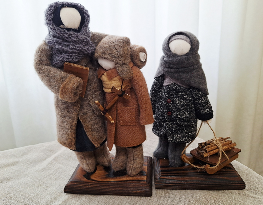– Народными промыслами я, проведя детство в деревне, интересовалась всегда, – говорит собеседница. – Моя бабушка много шила, вышивала и рассказывала об этих ремёслах. А я всегда внимательно её слушала, наблюдала за ней, и мне было так интересно! К традициям предков у меня всегда было особое отношение и уважение. Белорусские народные куклы – часть традиционной культуры. Они несут в себе определённые образы, в частности представления о семейных ценностях и укладе, мужских и женских ролях, материнстве, любви к родному краю, героическому прошлому белорусского народа. Особенностью кукол-мотанок является отсутствие лица. Это не столько эстетическое решение, сколько сохранение сложившейся традиции. Основа изделия – деревянная палочка или скруток из ткани. При их изготовлении не используются клей, ножницы, иголки. Обязательно применяются натуральные материалы – лён, хлопок.