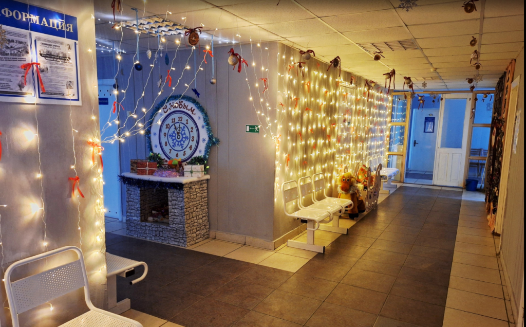 Посетив данное отделение, можно с уверенностью сказать, что его работники постарались нарядить помещение красиво и со вкусом. Каждый уголок имеет свою «изюминку». У входа разместился модный символ года в джинсах под зонтиком, который встречает пациентов. В одной стороне коридора – композиция во главе со Снежной Королевой, в другой – зелёная лесная красавица с множеством украшений и игрушек ручной работы, которые делает санитарка Любовь Николаенко.